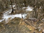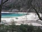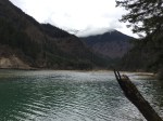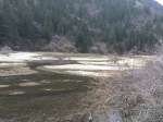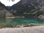 Von Jiuzhaigou aus wählten wir für die Rückreise die Ost-Route, um einen Stopp in Jiangyou einzulegen, der Heimatstadt des Tangdichters Li Taibo. Die Ost-Route ist deutlich weniger befahren und landschaftlich wunderschön. Zunächst ging es kräftig bergauf auf einen Pass. Die Straße in gutem Zustand nur ab und an ein bisschen Steinschlaggeröll. Die Passhöhe war zugleich die Grenze zwischen dem autonom regierten Bezirk Aba und dem Bezirk Minxian, ein Bezirk mit offensichtlich klammer Kasse, denn die Straße wurde deutlich schlechter. Von Schlagloch zu Schlagloch schraubten wir uns den Pass wieder nach unten und fuhrhüpften dann in einem wunderschönes Tal einen Fluss entlang, der auch wieder Min hieß, aber anders geschrieben wird als der erste Min ist und auch noch ein paar mal seinen Namen wechselt.